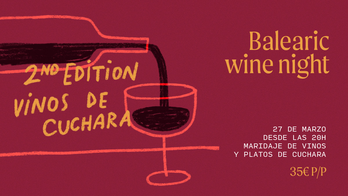 In this second edition of Balearic Wine Night, we bring together wines from Mallorca with comforting spoon-inspired flavours in a tasting format: small courses inspired by traditional stews and slow-cooked dishes, created to accompany each glass.