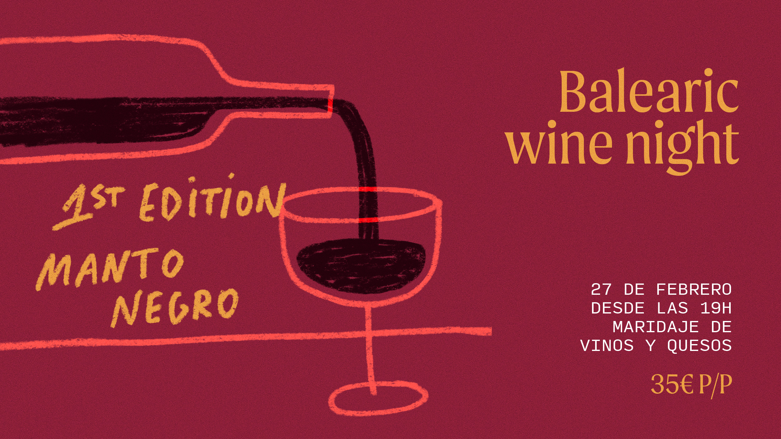 Primera edición de Balearic Wine Night: una cata de vinos de Mallorca guiada por Manu Pérez, sommelier, centrada en una cepa emblemática de Binissalem, Manto Negro, descubierta a través de diferentes estilos y matices.